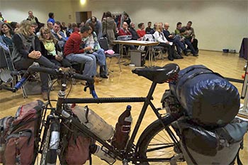 Der vorzeitige Frühling in diesem Jahr hat das Reisefieber der rund 2.000 Besucherinnen und Besucher in Wallung gebracht. Glückliche Menschen mit dicken Paketen von Prospekten und Radkarten unter dem arm haben Ideen für mindestens fünf sommerliche Touren gesammelt. Ob es nun Vogelsberg oder Lausitz, Mosel, Saar, Tauber und Lahn oder doch lieber Frankreich oder Luxemburg wird, blieb noch offen. Vielleicht wird es mal wieder Mainfranken, weil die drei Weinköniginnen einen so guten Roten ausgeschenkt haben.