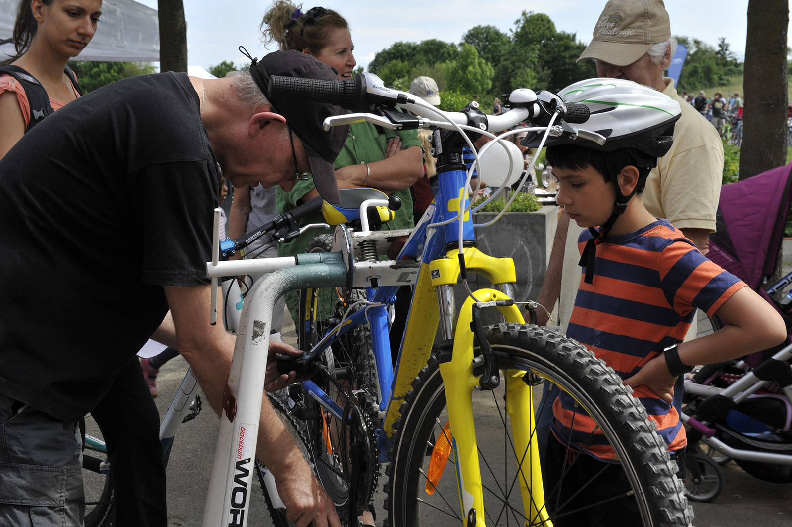Der kühle Mai 2015 hat es bis zum letzten Tag spannend gemacht, ob das nun schon 6. Große ADFC Radler-Fest im Trockenen gefeiert werden kann. Morgens war es noch etwas frisch, so dass sich diesmal "nur" rund 6.000 Radlerinnen und Radler aus Frankfurt und Rhein-Main auf den Weg zum Alten Flugplatz am grünen Niddaufer machten. Sie erlebten ein sehr entspanntes und informatives Familienfest mit neuen und bewährten Ausstellern und Attraktionen. Und alle kamen ungeduscht und sehr zufrieden nach Hause, weil der Regen erst ab 20 Uhr einsetzte.
