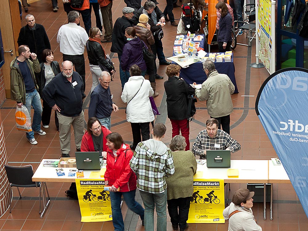 Ein reiselustiges Publikum lässt sich auch vom Nieselregen nicht abschrecken, wenn die Radler-Messe des ADFC die neue Saison eröffnet. Zwar wurde der Rekord von 2011 mit 2.000 Besuchern nicht ganz erreicht, aber umso länger blieben sie an den Ständen der 44 Aussteller. Viele von ihnen waren am Abend des 18. März restlos blank und sehr zufrieden. Alles, was sie an Infos zu Reisezielen und Touren im In- und Ausland mitgebracht hatten, fand seinen Weg in die Packtaschen.