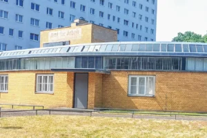 Wieder zurück in der Innenstadt ging es zum ehemaligen Arbeitsamt. Der gelbe überwiegend einstöckige Rundbau hat viele Eingänge. Durch sie wurden die Besucher mit ihren verschiedenen Anliegen, quasi „vorsortiert“, um eine schnellere Bedienung der Arbeitssuchenden möglich zu machen.