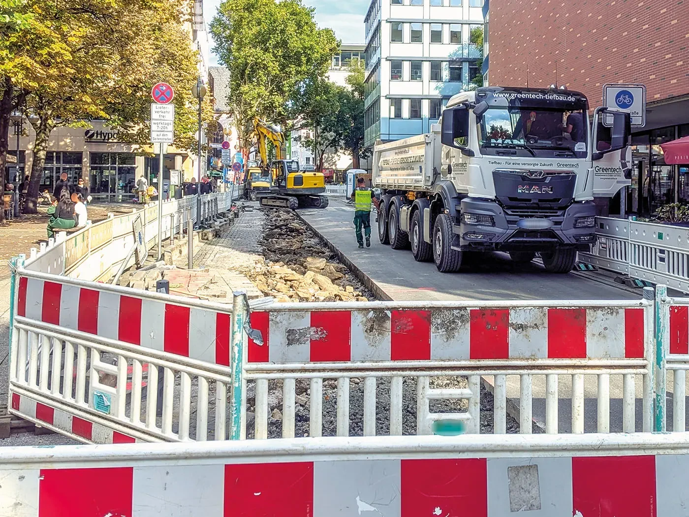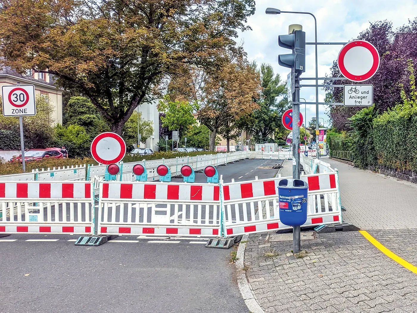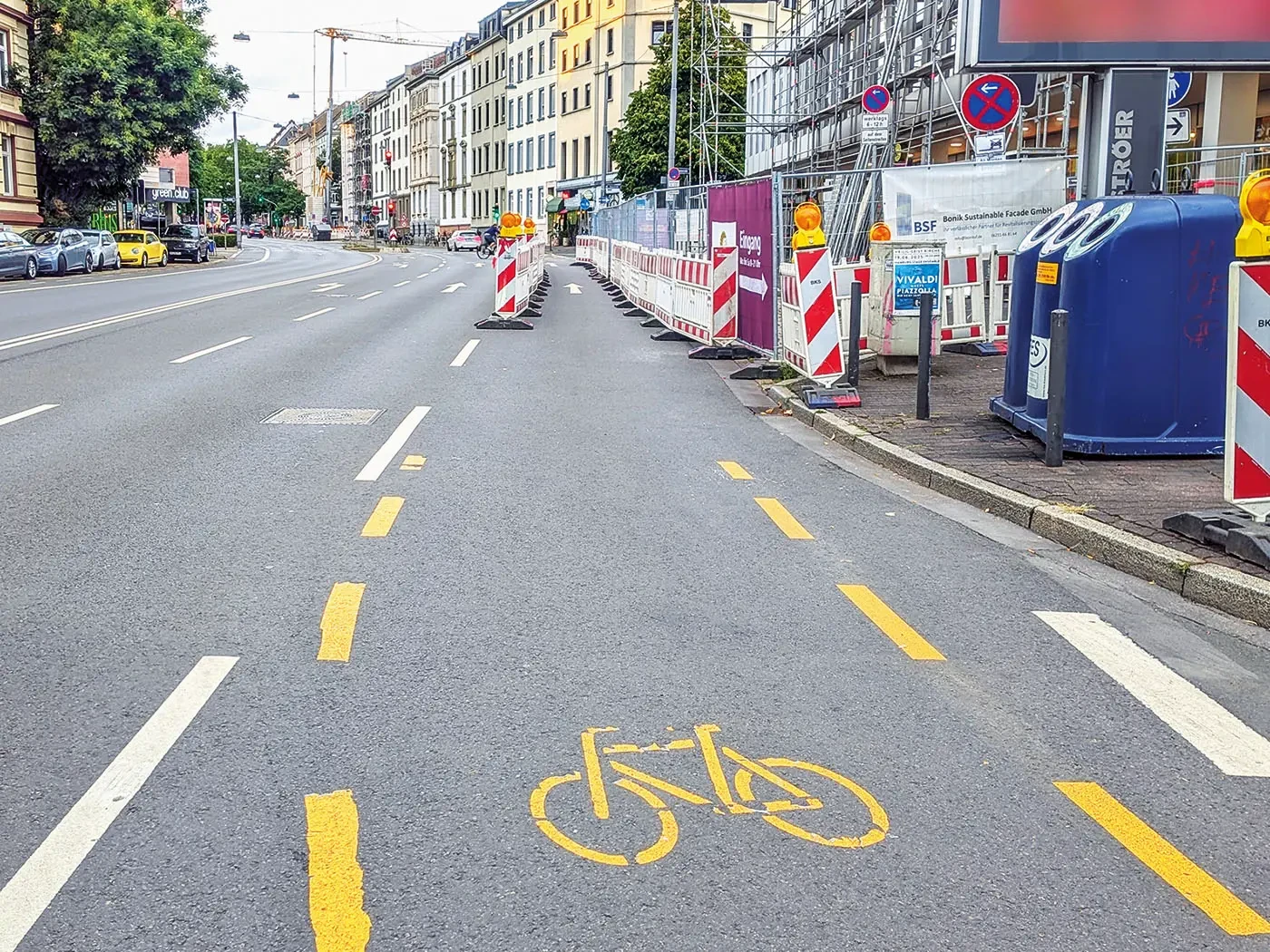 Kaum war der Reuterweg nach langer Baustelle wieder offen, starteten die Bauarbeiten auf der benachbarten Bockenheimer Landstraße. Die von der Autolobby prophezeiten Autostaus blieben, wie schon beim Reuterweg, auch dieses Mal aus. Für uns sehr positiv: Die Straße wird kernsaniert, dabei werden direkt breite und baulich getrennte Radwege eingerichtet. Die Baustelle ist dabei ein wunderbarer Testlauf, um die von manchen prophezeiten dramatischen Auswirkungen praktisch zu untersuchen. Bisher läuft es an der Baustelle erstaunlich friedlich ab. Das dürfte auch damit zusammenhängen, dass die Stadt Frankfurt wieder die Navigationsdienste vorab über die Sperrung informierte. Dadurch bekommen die meisten Autofahrerinnen und Autofahrer gar nichts von der Baustelle mit.