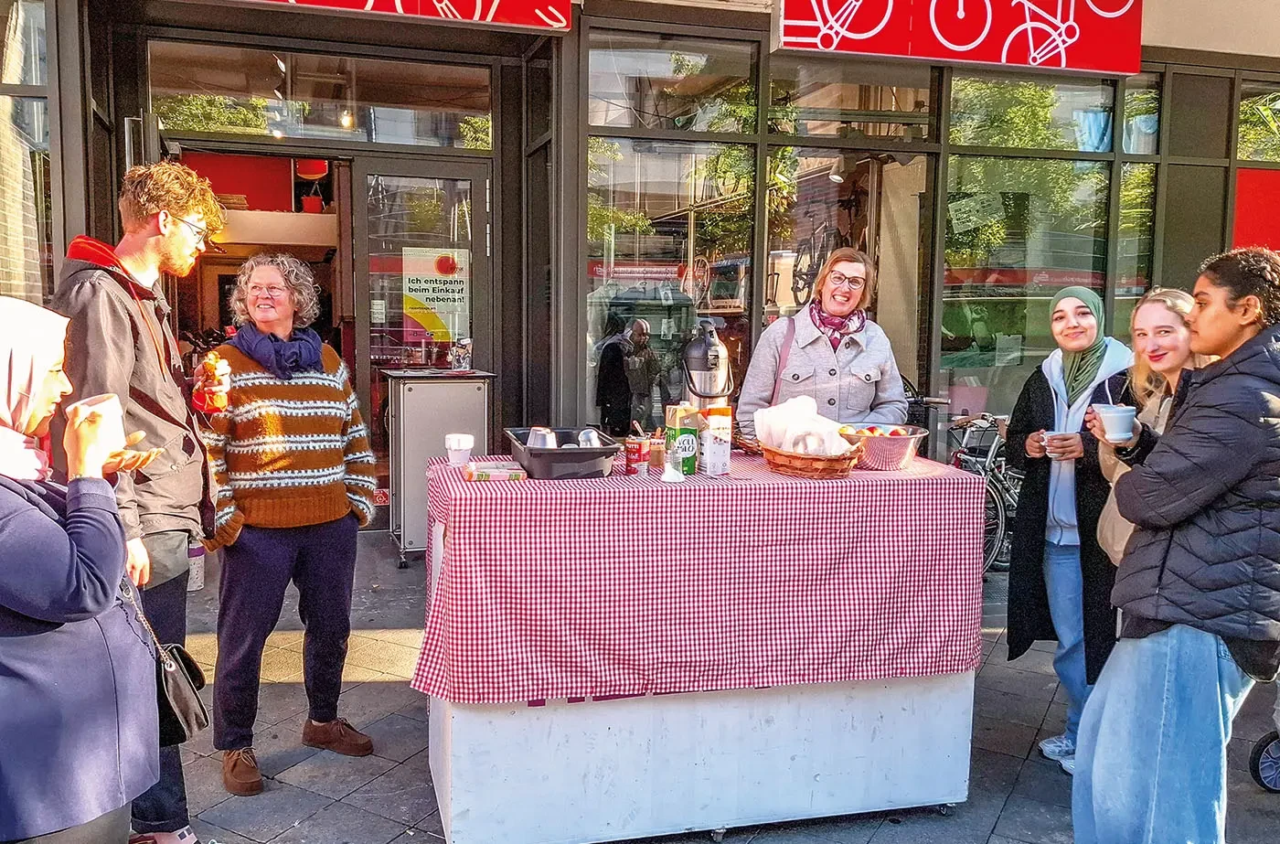 Nach der Eröffnung des neuen Fahrradparkhauses an der Berliner Straße wollten der Radladen artefakt und der ADFC Offenbach all denen etwas Gutes tun, die mit dem Rad oder öffentlichen Verkehrsmitteln in der Stadt pendeln, ihren Arbeits- oder Schulweg absolvieren oder ihre Erledigungen machen. Für sie gab es an zwei Donnerstagen im September und Oktober einen Morgen-Imbiss.