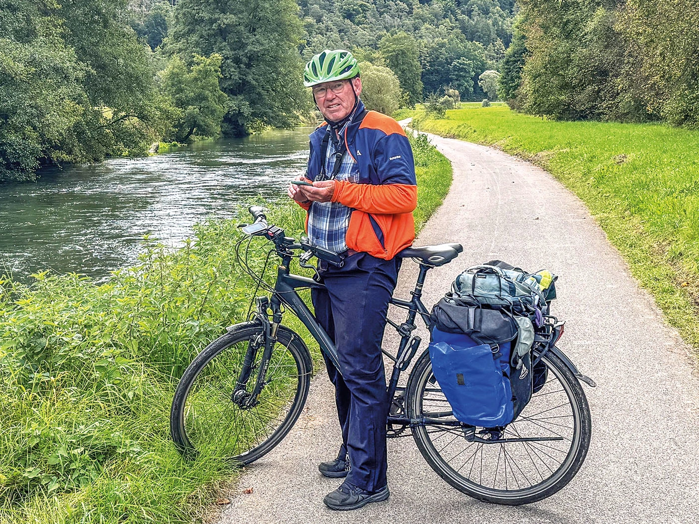 Dieter fährt seit seinem achten Lebensjahr regelmäßig Fahrrad, zuerst in die Schule, dann während des Studiums zur Universität. In den Anfangsjahren seines Berufslebens hingegen spielte das Rad für den Weg zur Arbeit keine Rolle. Demgegenüber war Dieter gemeinsam mit seiner Frau immer wieder in der Freizeit mit dem Rad auf Tages- und Mehrtagestouren unterwegs. Donautal, Lahntal, Westerwald – das waren in den ersten Jahren die Regionen, die die beiden besuchten. Auch auf einer Flugreise nach Portugal hatten sie ihre Räder dabei und radelten von Porto nach Lissabon.