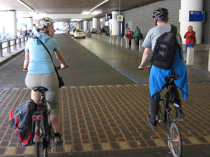 Gateway Gardens, Ellis Road Tunnel, Terminal 3, Hochbahn, aktuelle Radwegführung. Es gibt wohl wenige Großbaustellen in diesem Land, die direkt an einem gut befahrbaren Radweg liegen. Nicht besonders idyllisch, zugegeben, aber immer spannend und hochinteressant. Die laute Autobahn neben mir, heulende Düsenjets über mir, eine formidable Asphaltpiste unter mir. Radwegbeschilderung zum Terminal, nach Walldorf, nach Zeppelinheim.