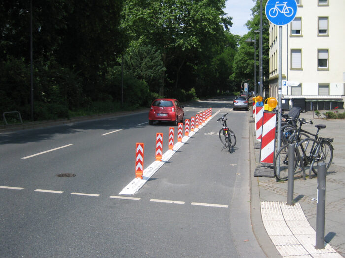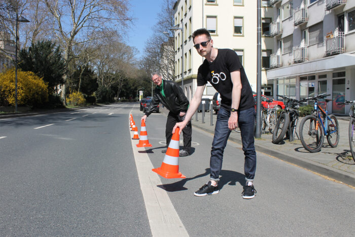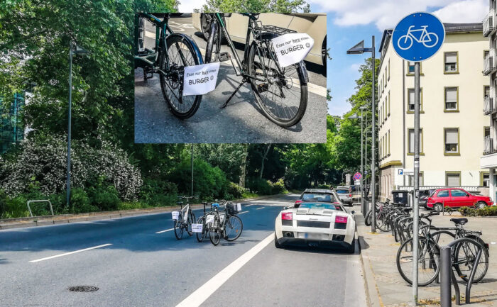Mein Gott, war das ein Kraftakt für eine Gruppe von etwa einem halben Dutzend Aktive aus der ADFC-Verkehrs-AG, die Stadt für eine seit Jahren überfällige Maßnahme gegen das notorische Falschparken auf einem Radstreifen endlich zur Umsetzung zu treiben. An der besonders gefährlichen Stelle der Obermainanlage direkt hinter der Flößerbrücke wird jetzt endlich das Falschparken physisch erschwert...
