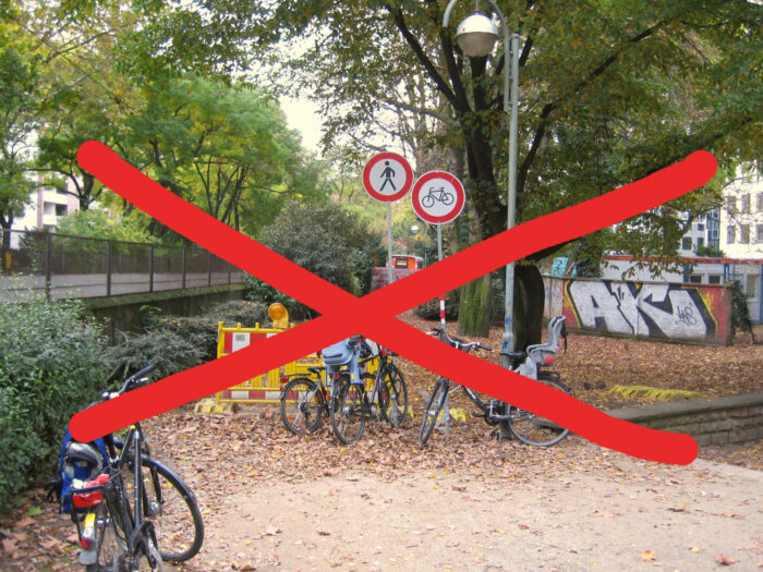 Vorne Verbot des Fahrradparkens, hinten Leerstand: Wir möchten da keinen direkten Zusammenhang herstellen. Aber wer die radfahrende Kundschaft verprellt, sollte auch mit Umsatzeinbußen und Beschwerden rechnen