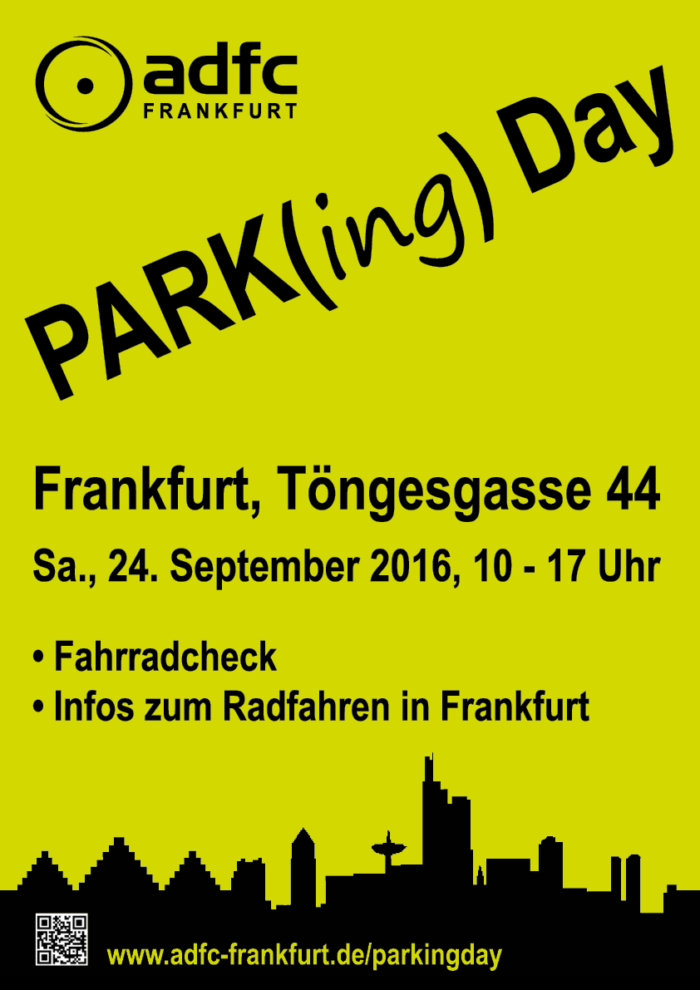 Am Samstag, 20. September 2025, ist es wieder so weit: Zum zehnten Mal findet der Park(ing) Day in Frankfurt statt. Der ADFC Frankfurt zeigt gemeinsam mit VCD und weiteren Organisationen in der Oppenheimer Landstraße 27/Ecke Schweizer Platz in Sachsenhausen, wie viel Platz Autos in der Stadt verbrauchen und was sich stattdessen auf diesen Parkplätzen befinden könnte.