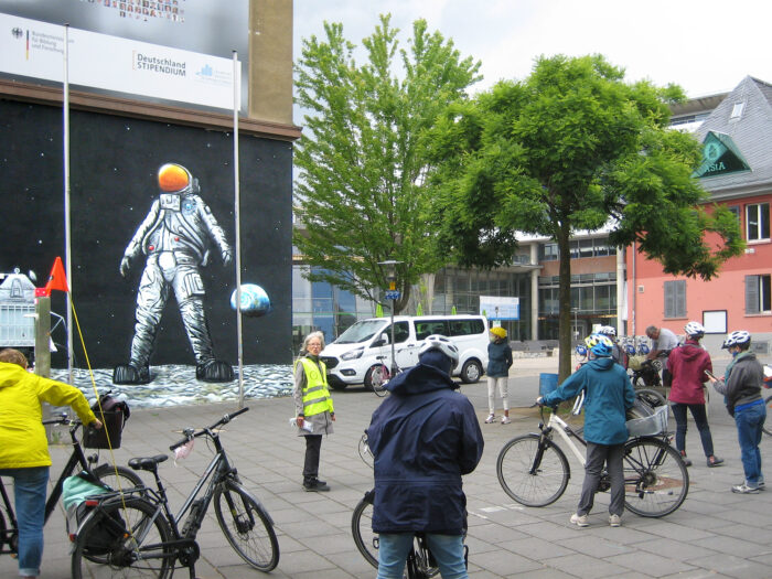 Geleitet wurde die Tour von Katja Hertel und Uta Fitzen. Start war in Praunheim, ein weiterer Stopp war am Dottenfelder Hof in Bad Vilbel vorgesehen, wo weitere Teilnehmer und Teilnehmerinnen zu der Tour stießen.