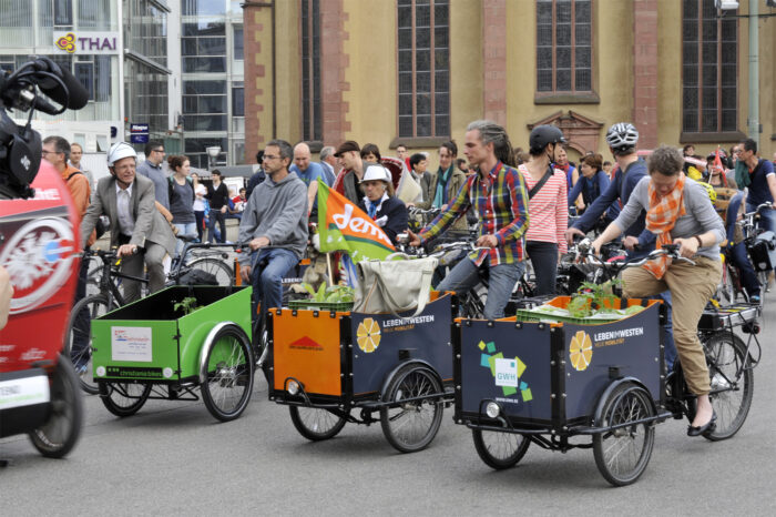 Krönender Abschluss der "KarmaKonsum Konferenz 2012", einem Kongress hunderter junger Professionals mit dem Thema Nachhaltigkeit in Konsumieren und Wirtschaften, war eine gemeinsame Radtour der Kongressteilnehmer durch Frankfurt. Der bekannte Stadtführer Christian Setzepfandt erläuterte...