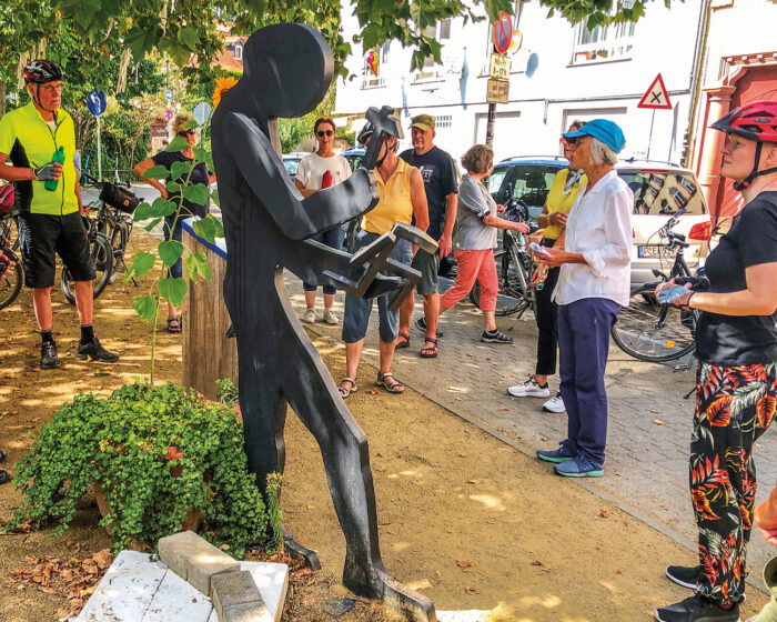 Immer noch sind die Frauen ein wenig unterrepräsentiert in der Gruppe der Tourenleiter:innen im Frankfurter ADFC, aber sie holen auf und bieten sehr unterschiedliche Radtouren an. Uta Fitzen gehört dazu, sie leitet regelmäßig interessante Radtouren.