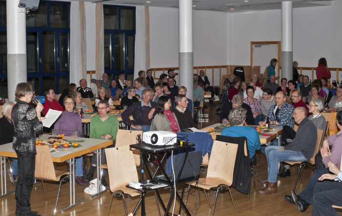 Auch nach dem Umzug in den großen Saal des Bürgerhauses Bockenheim reichte der Platz gerade so eben für die über 100 Aktiven, Freunde und Förderer des ADFC. Außer Kerzenschein und Flötenspiel, Glühwein und Weihnachtsgebäck gab es diesmal zu Weihnachten eine Feier der Innovationen.