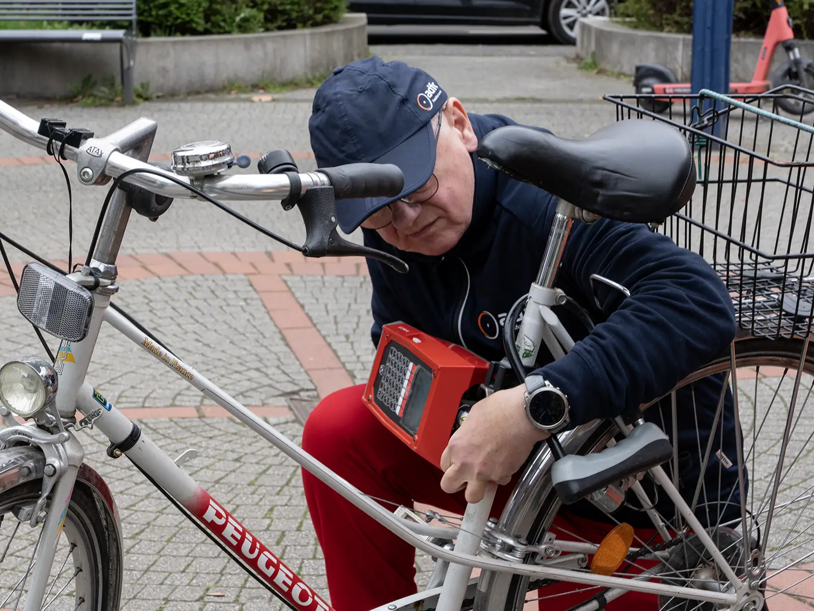 Zufrieden war das Team der KlauNixe, das an seinem Stand vor dem Saalbau Fahrräder codierte. Regen blieb zum Glück aus, und erträgliche Temperaturen erleichterten die Arbeit, so dass nun rund weitere 35 Fahrräder codiert durch die Stadt rollen (und Langfinger dadurch hoffentlich von ihrem Tun abhalten).