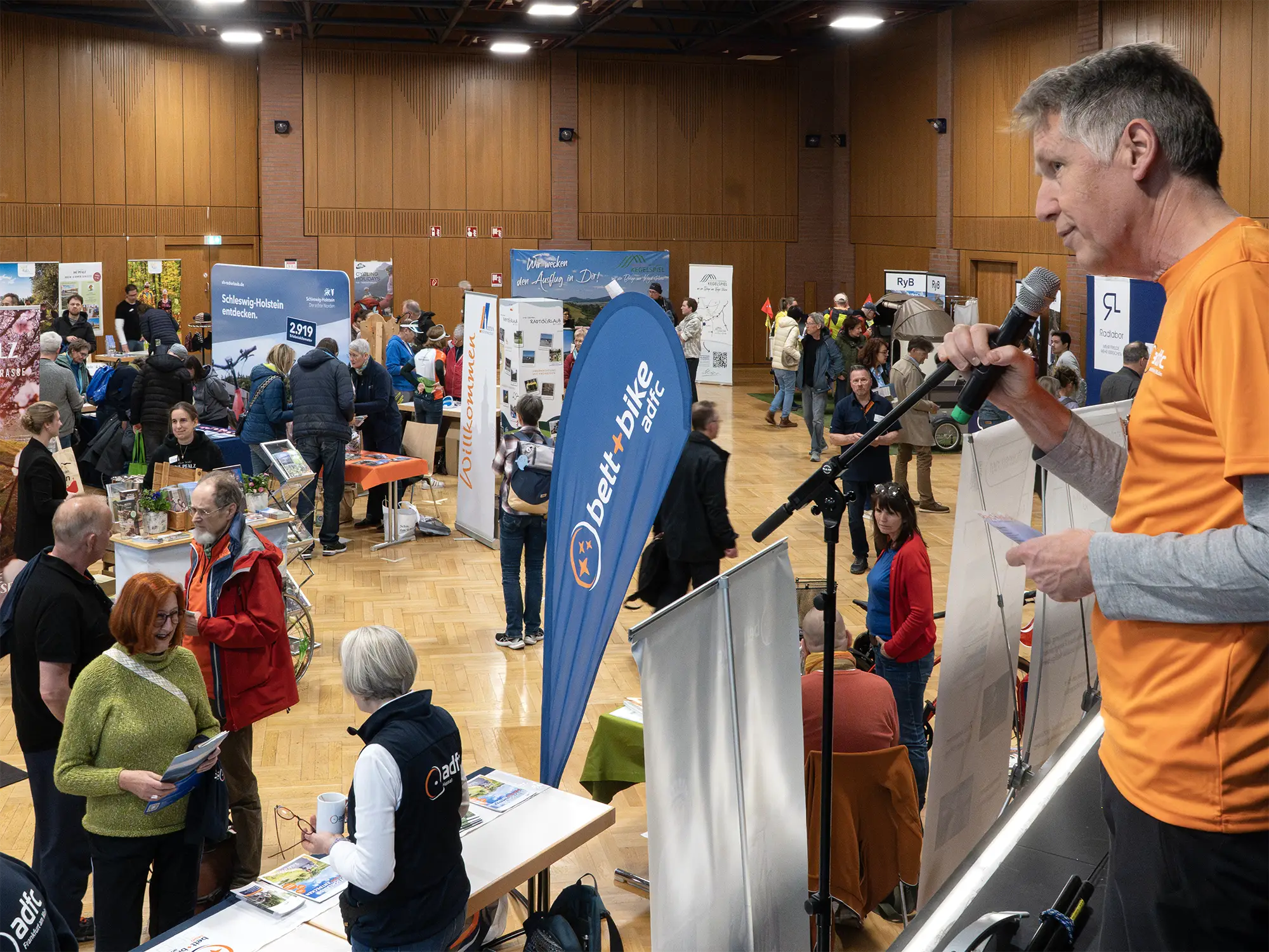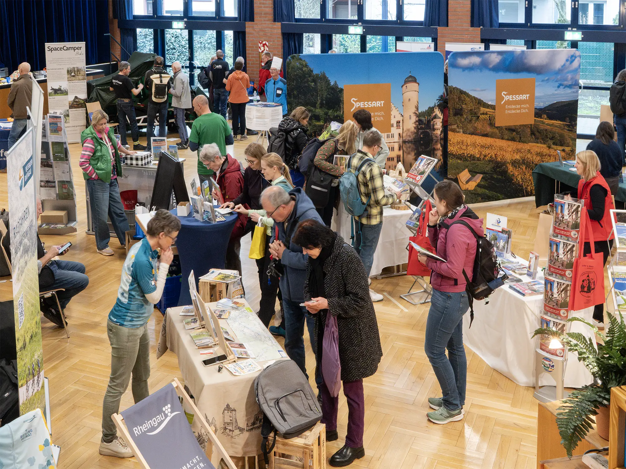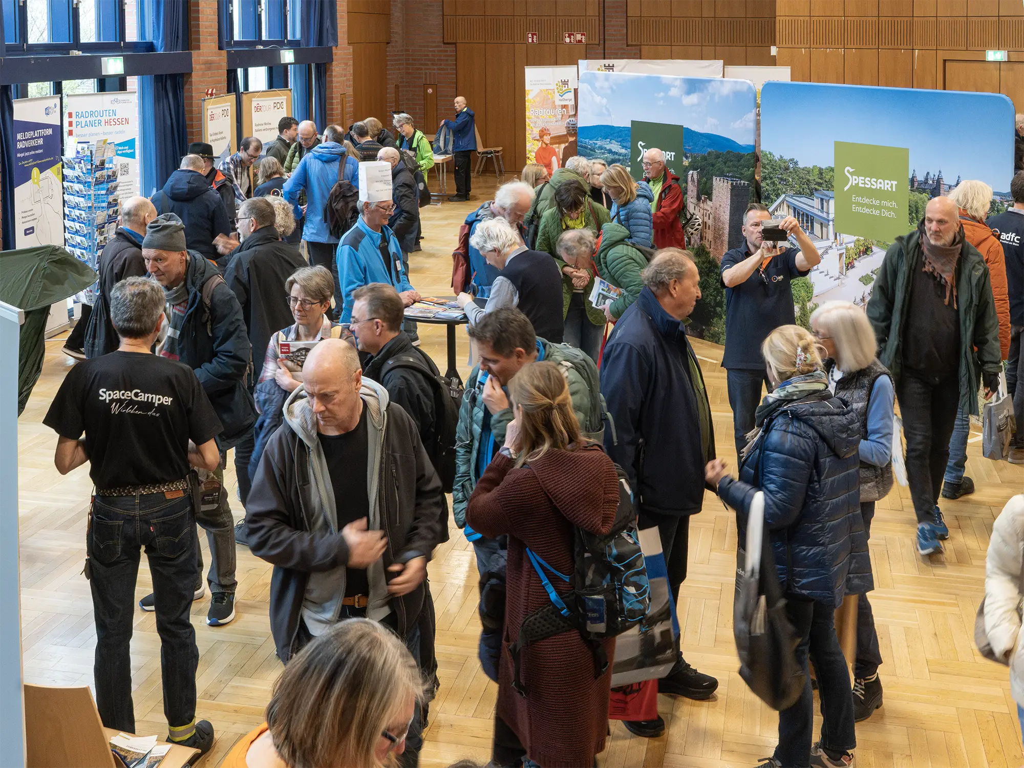 Fast 50 Aussteller, mehr als in den Vorjahren, hatten sich für die Rad+Reise angemeldet, und bis auf zwei kurzfristige Absagen waren alle am Sonntag im Saalbau Bornheim anwesend. Der Schwerpunkt lag wieder bei Tourismus-Regionen in der Nähe. Rhön, Vogelsberg, Rheinland, Bergisches Land oder Bergstraße werben für Wochenendausflüge oder Kurzurlaube. Aber auch Schleswig-Holstein war mit einem Stand vertreten, oder Amberg in der Oberpfalz. Dazu einige Radreiseanbieter, auch verbunden mit einer Flusskreuzfahrt. Interessierte konnten sich im Rahmen der Reisevorträge gleich ein genaues Bild machen.