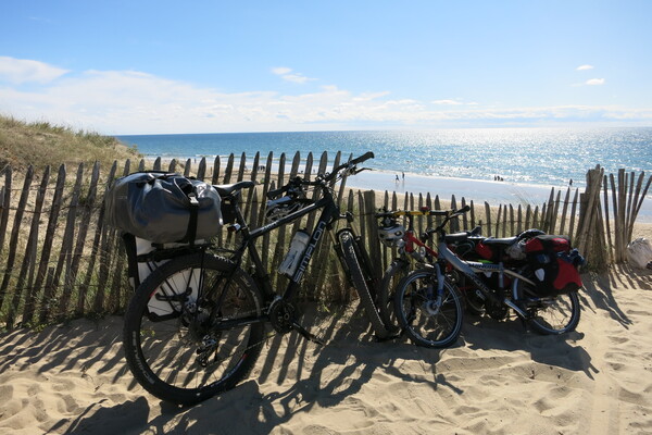 Die Vélodyssée ist mit 1200 Kilometern die längste Radroute Frankreichs. Sie beginnt in Roscoff an der bretonischen Nordküste und endet bei Hendaye an der spanischen Grenze. In Aquitanien schlängelt sie sich ohne nennenswerte Steigungen, auf gut ausgebauten Radwegen durch duftende Kiefernwälder. Ein wahres Eldorado für alle Radfreunde und für ein besonderes Radabenteuer: Zwei Wochen, zwei Familien, zwei Zelte, zwei Anhänger und acht Räder. Immer am Ozean entlang, den Wellen gleich, begleitet von schier endlosen Sandstränden und Dünen.