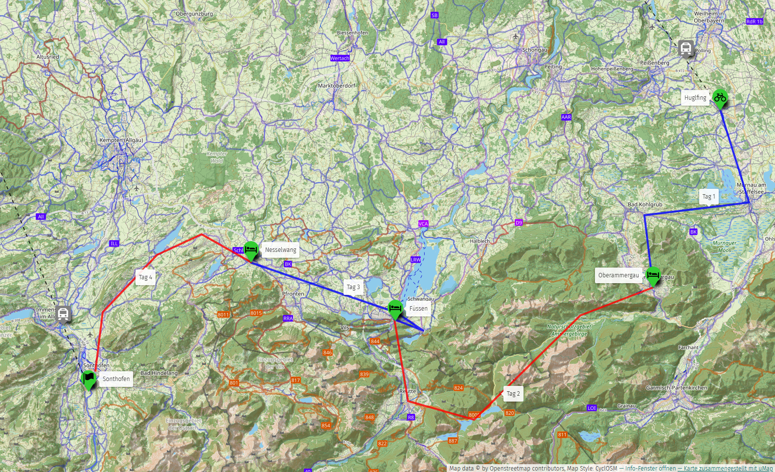 Wer kennt ihn nicht, den Kini? Ja, so heißt Ludwig II. in Bayern. Und König war er wohl eher im Nebenberuf. Er sah die Macht Bayerns nach der Reichsgründung 1871 schwinden und fühlte sich als symbolischer König ohne Einfluss. Viele seiner Zeitgenossen hielten ihn für verrückt und geistesgestört, doch Historiker sehen ihn als hochintelligenten, sensiblen Menschen, der aus psychischem Druck sich aus der Öffentlichkeit zurückzog und sich auf Schönheit, Technik, Symbolik und Architektur konzentrierte. Im Rahmen dieser insgesamt rund 200 km langen landschaftlich traumhaften Radreise lernen wir bei Führungen Ihn und seine Schlösser kennen.