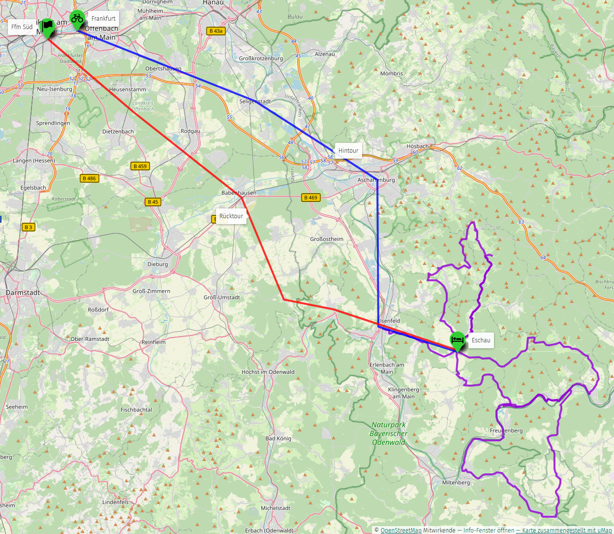 Die An- und Rückreise erfolgt ab Frankfurt mit unserem Gepäck am Fahrrad.